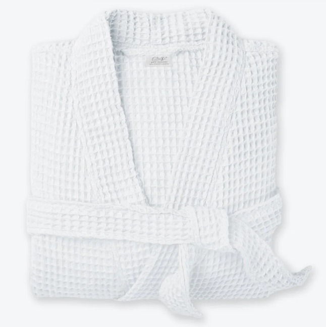 Roupão de banho unissexo branco com textura waffle